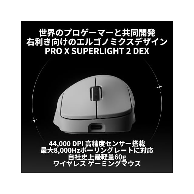 Logicool G 8000Hz ポーリングレート PRO X SUPERLIGHT 2 DEX 44K DPI ワイヤレス ゲーミングマウス GPROXSL-WLDEXWH エルゴノミクス 右手 軽量 60g LIGHTFORCE ハイブリッドスイッチ LIGHTSPEED USB Type-C 充電 POWERPLAY 対応 ゲーミング マウス 無線 windows ホワイト 国内正規品 | LIS MART
