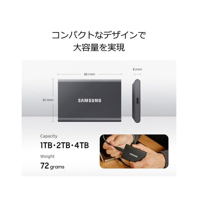 Samsung T7 2TB 外付けSSD 最大転送速度1,050MB/秒 USB3.2 Gen2(10Gbps, Type-C)グレー iPhone15シリーズ動作確認済み MU-PC2T0T/EC 国内正規品 | LIS MART