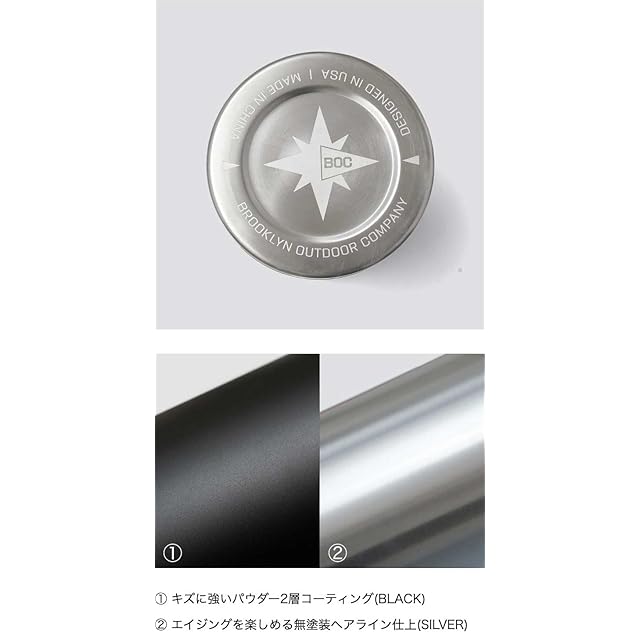 キズに強いパウダー2層コーティング(BLACK)、エイジングを楽しめる無塗装ヘアライン仕上(SILVER)