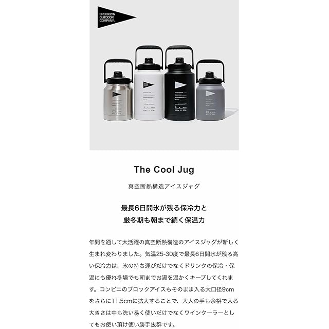 BROOKLYN OUTDOOR COMPANY (BOC) ブルックリンアウトドアカンパニー アイスジャグ 2.5L 3.8L 保冷 保温 NY発 キャンプ アウトドア 真空断熱構造 (2.5L ブラック)
