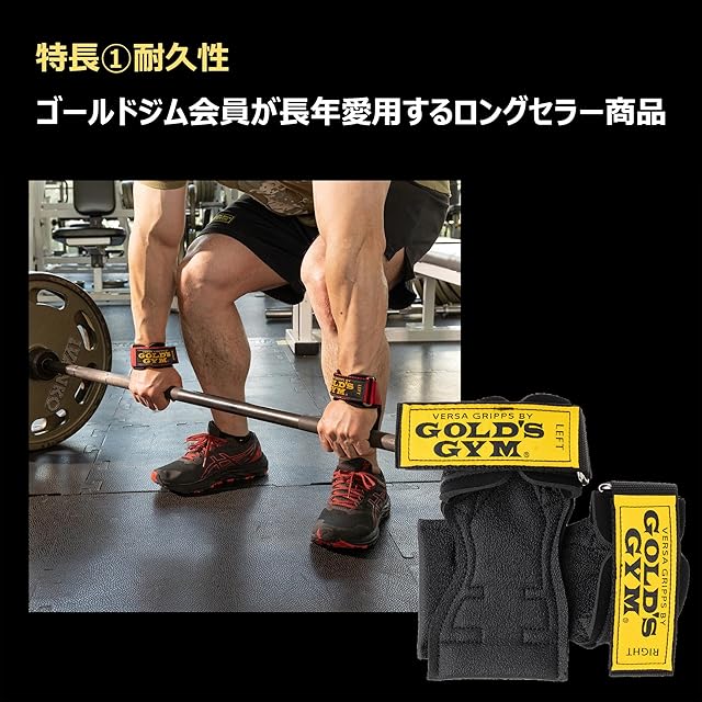 商品名:ゴールドジム(GOLD'S GYM)パワーグリップ クラシック3770 Lサイズ【元祖オリジナルパワーグリップ】 握力の補助 鍛えたい部位の集中トレーニング 懸垂 ラットプル デッドリフト シーテッドローイング 【ゴールドジム正規品】 黒/ラベル黄色