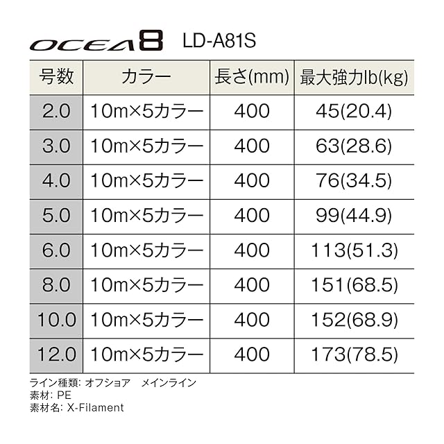 商品名:シマノ(SHIMANO) ライン オシア8 400m 6.0号 5カラー LD-A81S 釣り糸
