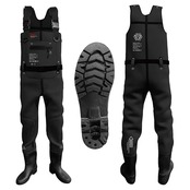 ■クロロプレン素材とは? 合成ゴムから生まれた素材で、熱の対流が起こりにくく断熱材として機能します。 体温だけでも保温効果があり、温かさが持続する仕組みになっています。 通気性がないため、夏場の利用はおすすめしません。 また、本クロロプレン素材をブーツ部へも採用させていただく、防寒仕様となります。 ※クロロプレンウェーダーの中に着こむ場合は、1サイズゆとりのあるサイズをオススメいたします。 ■仕様: ・ウェーダー形状:チェストハイウェーダー ・ブーツ:PVC一体成型ブーツ・日本人の足に合わせた甲高幅広のアジアンフィット ・ソール:ラジアルソール・脱ぎ履きしやすいキックオフ装備 ・ショルダーベルト(長さ調節可能) ・ウエストベルト(長さ調節可能):ベルトループ標準装備 ■材質: ・クロロプレン 4.0mm厚 ・PVC