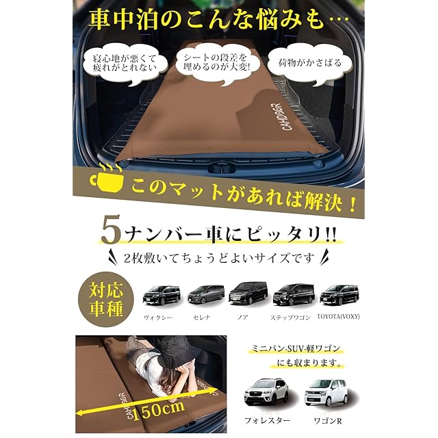 ✅ 【睡眠障害を解消】エアーベッドの幅がさらに広がりました。 幅75cm。 市販されている他のエアマットよりも幅が広いです。 使用時の寝返りも楽に行え、いつでもどこでも自宅のベッドのような「快適な寝心地」を作ることができます。 エアーベッドは2種類の厚みをご用意しております。 8CMと10CMの厚さで車内の段差や地面のデコボコを解消!底つき感もなく冬の気になる地面からの冷気もシャットアウトしてくれるので快適な睡眠を確保できます!