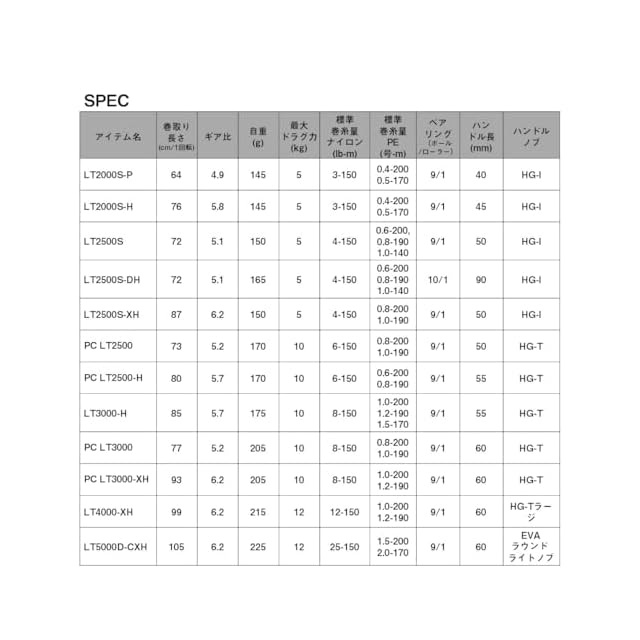【ベアリング(ボール/ベアリング)】:9/1【標準糸巻量PE(号-m)】:0.4-200, 0.5-170
