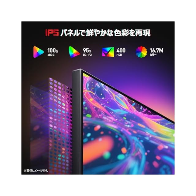 【Fast IPSパネル&広色域&驚くほどの映像美】178°広視野角の非光沢Fast IPSパネルを採用、どうな角度から見ても画像が鮮やかに映し出します。DCI-P3 95%、sRGB 100%の広色域と16.7M以上の表示色で、忠実な色を再現でき、350nitの高輝度とHDR400機能加えて、明暗やディテールをすっきり映し出して、リアルで豊かな世界を没入します。