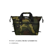 ■小物の収納に便利なフロントポケット付きで収納力をプラス。■サイドのバックルを外せば背の高いものも収納できるトートバック型に。 ■シンプルなデザインからアウトドアのみならず様々なシーンでご利用頂けるソフトクーラーです。