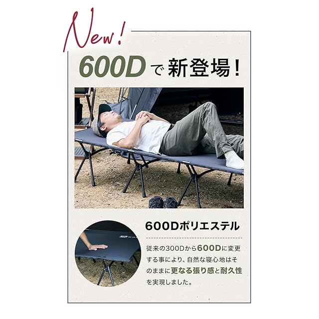 【地面からの熱や冷気をシャットダウン】- コットの下を風が通り抜けることで夏は涼しく、冬は地面からの底冷えに影響されないため快適に睡眠を取ることが可能です。コットと合わせてブランケットやシュラフ、キャンプ用マットなどを組み合わせることで、季節を問わず快適に使用することが可能に。テント内ではもちろん、シェルター内でも快適にご使用いただけます。【高耐荷重を支えるこだわりのフレーム】超々ジュラルミン(A7075)をフレームに採用するだけでなく各フレームのパイプの直径・厚みにもこだわることで150kgの重さを支える事ができる優れた強度を実現いたしました。