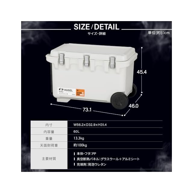 商品名:アイリスオーヤマ 真空断熱クーラーボックス VITC-60 ホワイトアッシュ 大型