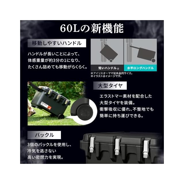 60Lの真空断熱クーラーボックス。冷蔵庫技術を[家]から[外]へ。約22日保冷。※アイリスオーヤマ調べ