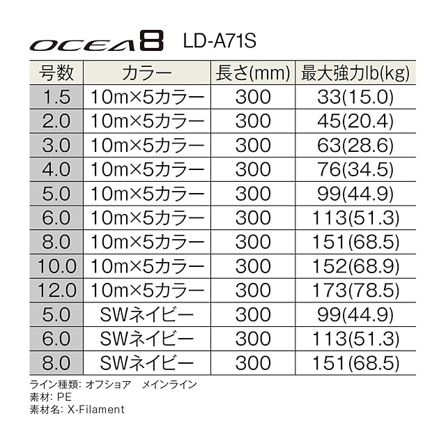 商品名:シマノ(SHIMANO) ライン オシア8 300m 3.0号 5カラー LD-A71S 釣り糸 ライン 3号