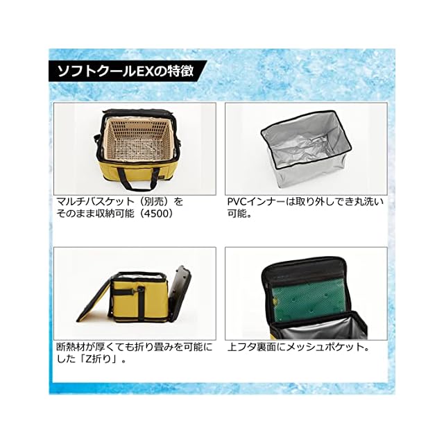 7層断熱構造を採用して保冷力を強化(断熱部は従来ソフトクールは発泡ポリエチレンのみ、EXは発泡ポリエチレン+発泡ウレタン)。 用途に合わせて選べる4サイズ、各3色展開。