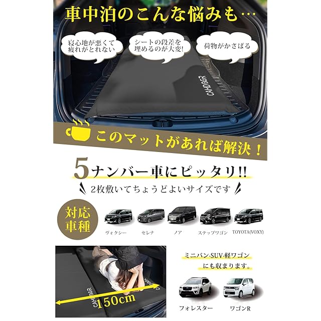 ✅ 【睡眠障害を解消】エアーベッドの幅がさらに広がりました。 幅75cm。 市販されている他のエアマットよりも幅が広いです。 使用時の寝返りも楽に行え、いつでもどこでも自宅のベッドのような「快適な寝心地」を作ることができます。 エアーベッドは2種類の厚みをご用意しております。 8CMと10CMの厚さで車内の段差や地面のデコボコを解消!底つき感もなく冬の気になる地面からの冷気もシャットアウトしてくれるので快適な睡眠を確保できます!