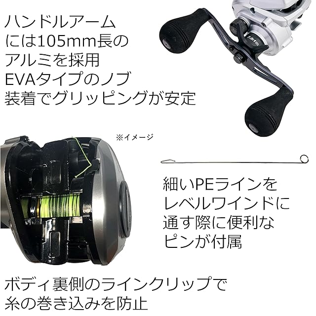 自重(g)233g●ギア比7.0 : 1●最大ライン巻取(cm)73cm●最大ドラグ力(Kg)5kg●ラインキャパシティPEライン(m)1号 - 300m●ラインキャパシティPEライン(m)1.5号 - 200m●ボール/ローラーベアリング3+1●ハンドル長(mm)105mm