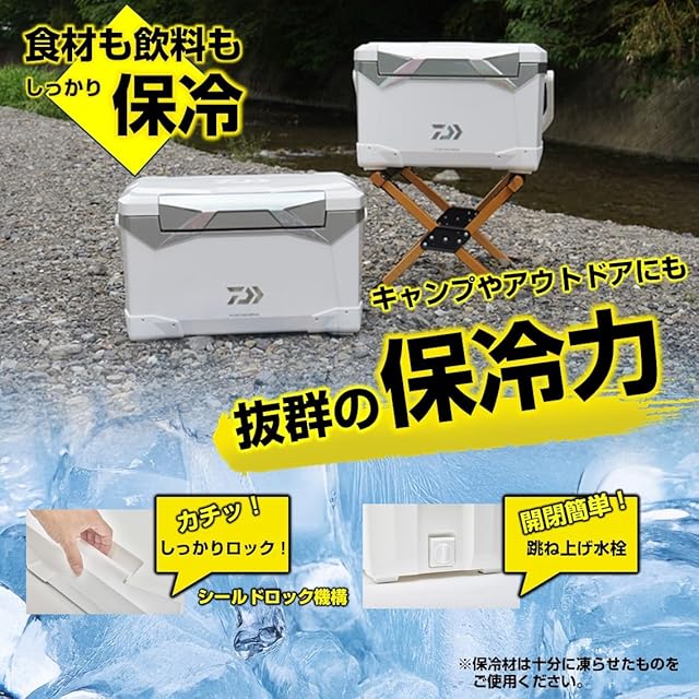 ダイワクーラー専用の滑り止めラバー「ふんばるマン」付き 対象魚に合わせて選べる28リットル、22リットル、16リットルの3サイズ 用途に合わせて選べる断熱仕様(6面真空、1面真空、ウレタン、スチロール) 真空モデルは断熱層の隙間を隅々までウレタンを充填