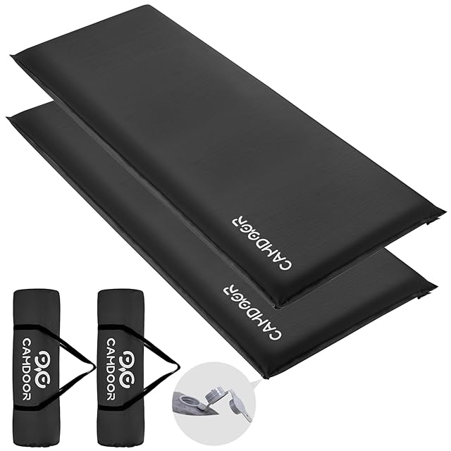 CAMDOOR キャンプ エアーマット 【30秒自動膨張・超広幅75cm】インフレーターマット 10cm/8cm インフ マット R値 6.8 自動膨張 車中泊 キャンプ用品 厚手 寝具エアーベッド 防水防潮 安全無臭 持ち運び便利 簡単収納 収納袋付き 2個セット | LIS MART