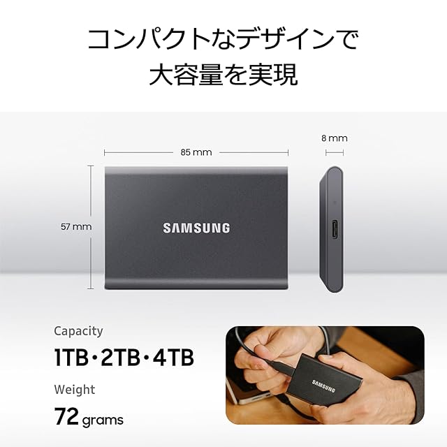 商品名:Samsung T7 1TB 外付けSSD 最大転送速度1,050MB/秒 USB3.2 Gen2(10Gbps, Type-C) グレー iPhone15シリーズ動作確認済み MU-PC1T0T-PD/EC 国内正規品【特典付モデル】