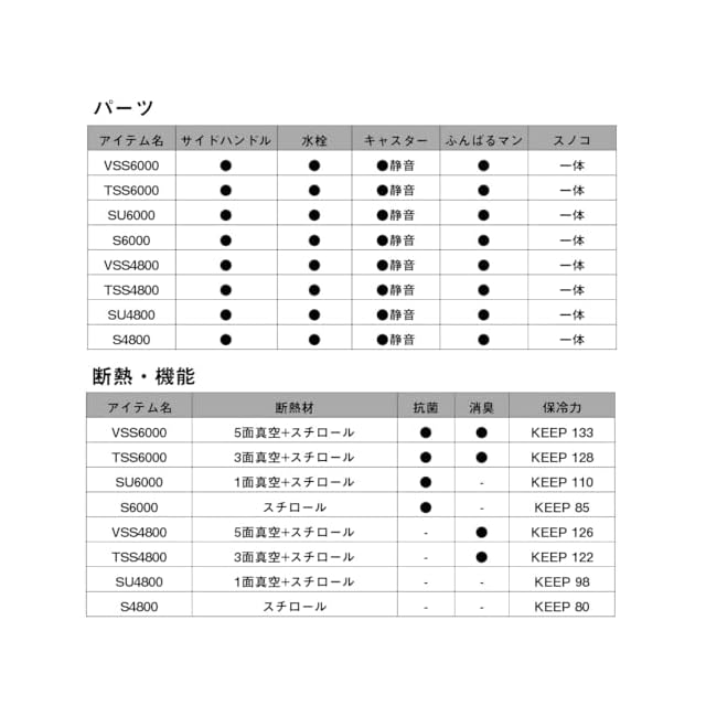 断熱材:スチロール / 保冷力:KEEP 85