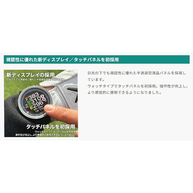 電源:Li-ion電池(USB Type-Cから充電)、使用時間:ゴルフモード:約11時間 時計モード:約24時間