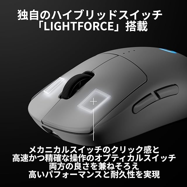 ロジクールG独自のハイブリッドスイッチ「LIGHTFORCE」を搭載/メカニカルスイッチのクリック感と高速かつ精確な操作のオプティカルスイッチ、両方の良さを取り入れたハイブリッドスイッチ/高いゲーミングパフォーマンスと耐久性を実現
