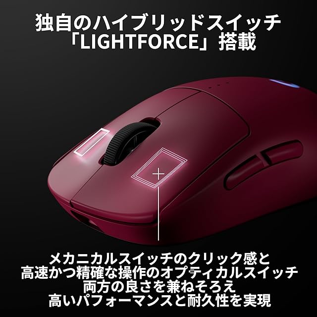 ロジクールG独自のハイブリッドスイッチ「LIGHTFORCE」を搭載/メカニカルスイッチのクリック感と高速かつ精確な操作のオプティカルスイッチ、両方の良さを取り入れたハイブリッドスイッチ/高いゲーミングパフォーマンスと耐久性を実現
