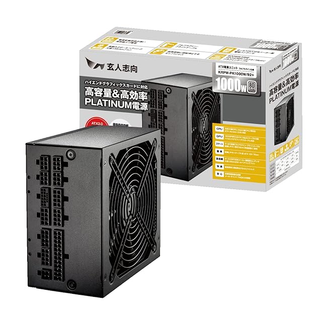 商品名:玄人志向 電源ユニット 1000W ATX 電源 80 PLUS プラチナ PC電源 セミプラグイン セミファンレス KRPW-PK1000W/92+