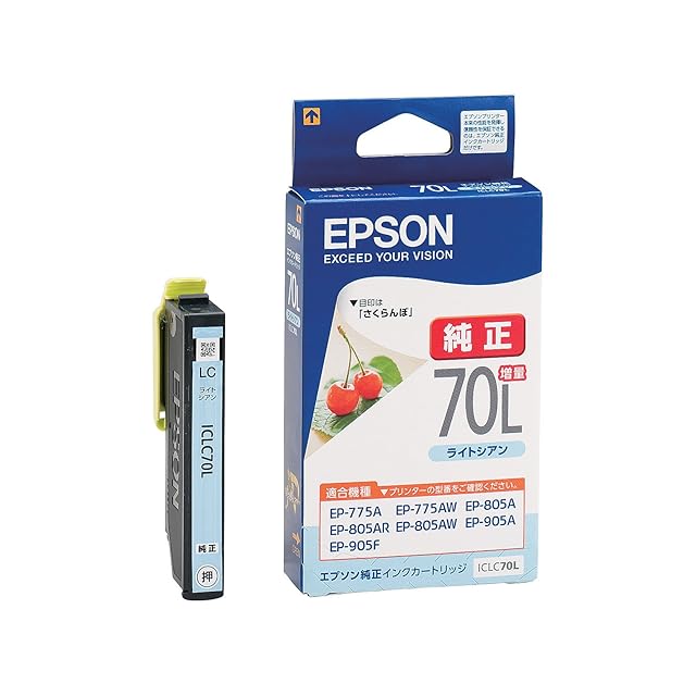 商品名:エプソン 純正 インクカートリッジ さくらんぼ ICLC70L ライトシアン 増量