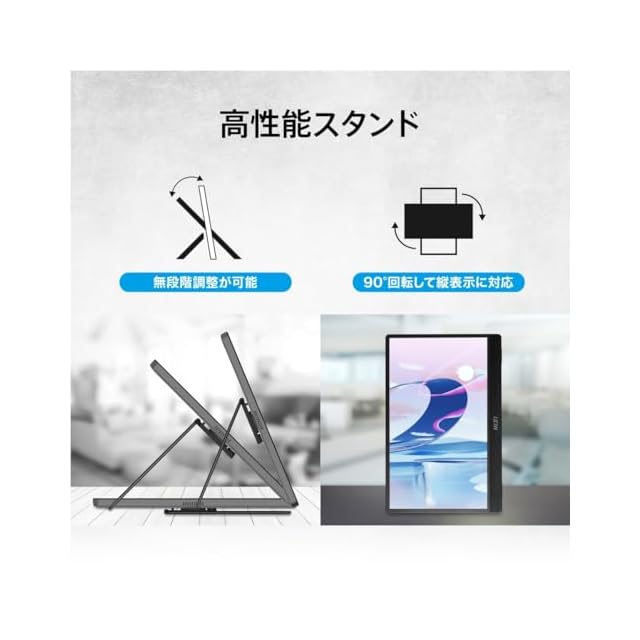 商品名:MSI モバイルモニター PRO MP161 E2 15.6インチ/フルHD/IPSパネル/60Hz/薄型設計/高性能スタンド/片側L字ケーブル/スリーブケース/高性能スタンド付き/スピーカー(1.5W + 1.5W)/HDMI/USB Type-C/メーカー3年