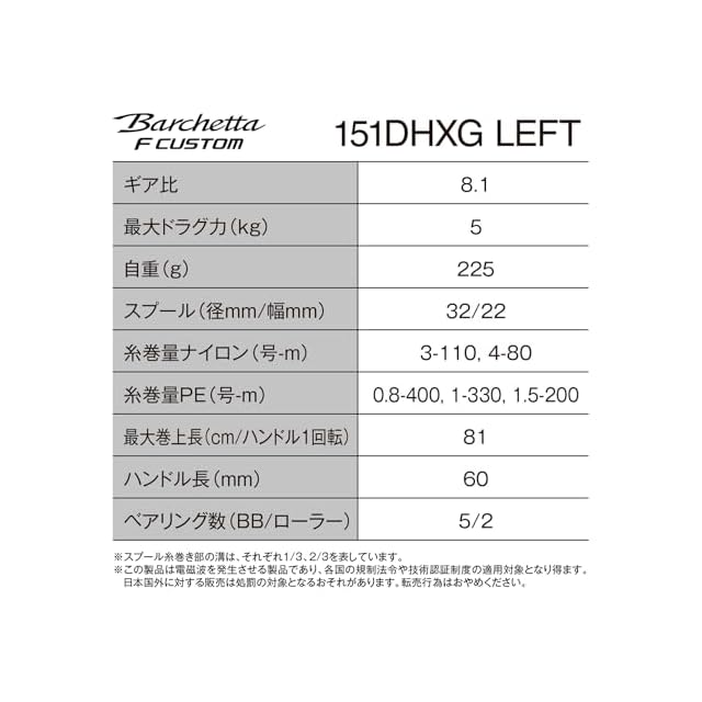 商品名:シマノ(SHIMANO) ベイトリール 25バルケッタ Fカスタム 151DHXG (左)