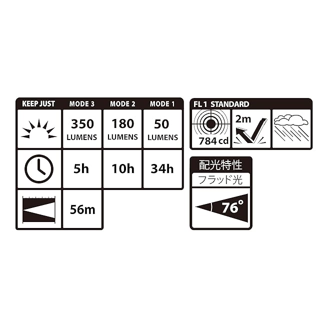 【点灯時間(h)】ブースト:- / ハイ:5 / ミドル:10 /ロー:34