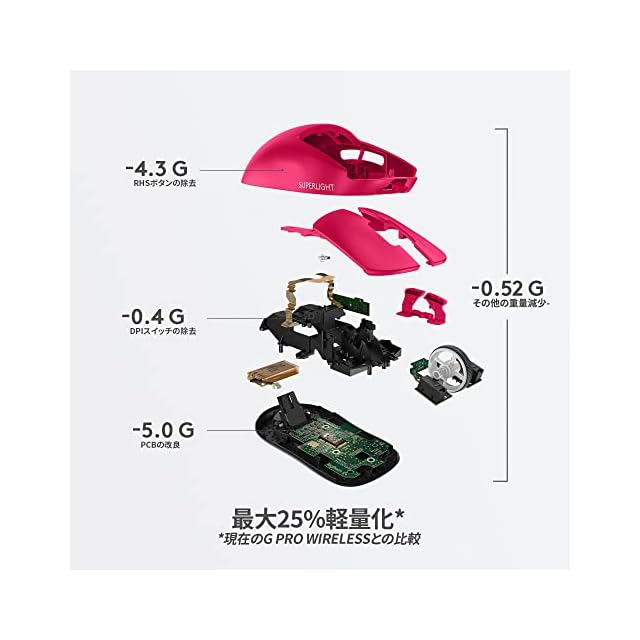 Logicool G PRO X SUPERLIGHT ワイヤレス ゲーミングマウス G-PPD-003WL-MG 軽量 63g未満 LIGHTSPEED HERO 25Kセンサー POWERPLAY 無線 充電 対応 ゲーミング マウス マゼンタ ピンク PC windows 国内正規品 | LIS MART