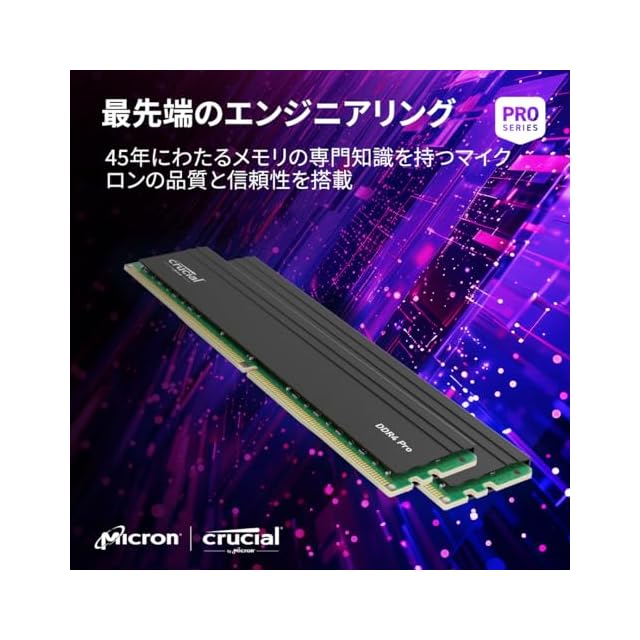 CrucialPRO (マイクロン製) デスクトップ用メモリ 32GBX2枚 DDR4-3200 メーカー制限付無期限 CP2K32G4DFRA32A【国内正規代理店品】