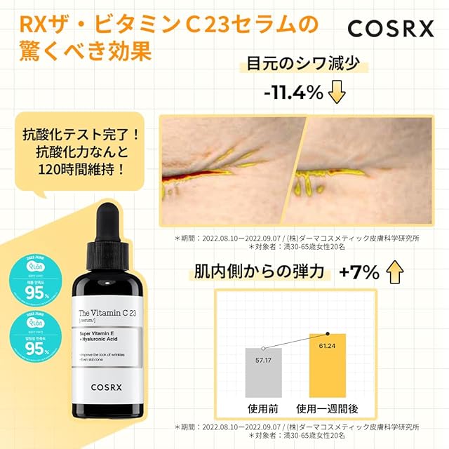 商品名:COSRX ビタミンC23美容液 20ml 生ビタミンC 毛穴 ナイアシンアミド ビタミンE ヒアルロン酸 毛穴 ハリケア セラム ローション 純粋ビタミンC 敏感肌 人体適用テスト済み コスアールエックス エッセンス スキンケア 韓国コスメ