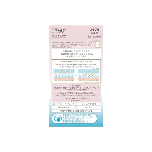 アネッサ(ANESSA) パーフェクトUVマイルドミルク NA 60mL SPF50+PA++++ 敏感肌 赤ちゃん 無添加 無香料 日焼け止め 顔・からだ用 化粧下地 ウォータープルーフ | LIS MART
