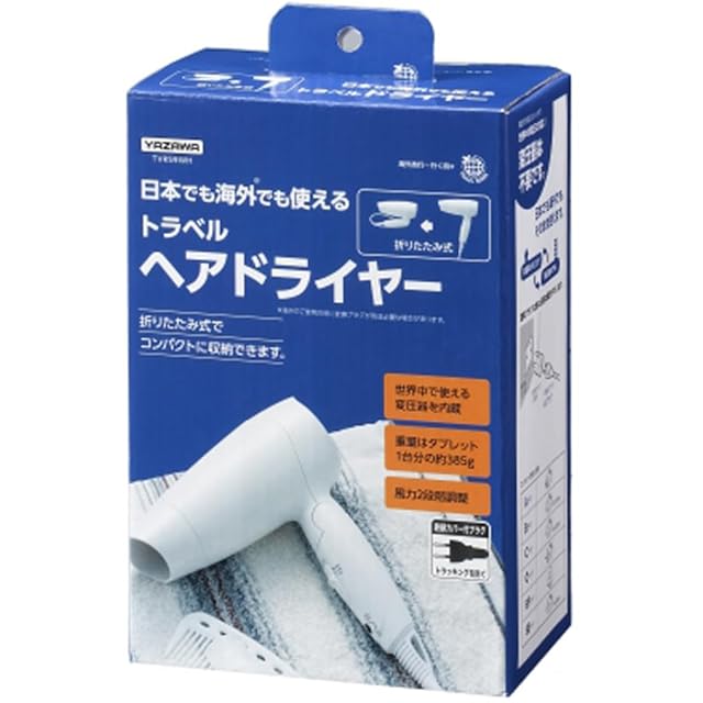 商品名:ヤザワコーポレーション YAZAWA ヘアドライヤー トラベルドライヤー 小型 折りたたみ 電圧切替 2段階風量 コード 1.8m 旅行 トラベル 海外 ホワイト TVR59WH