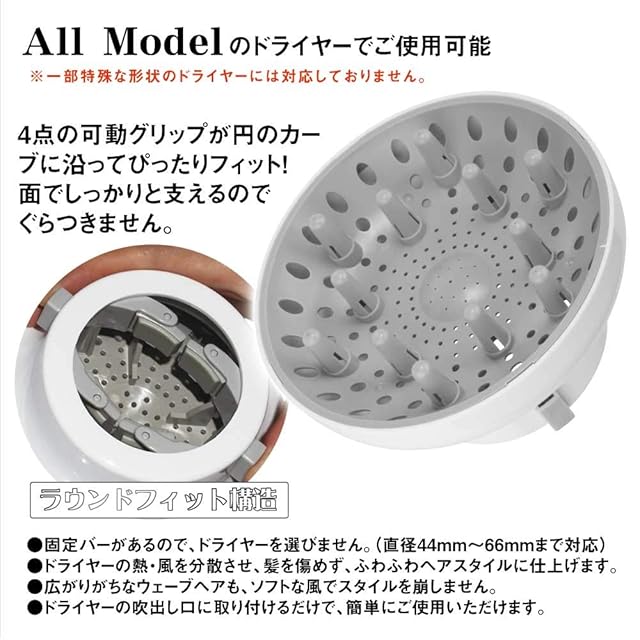 ■ドライヤーの熱・風を分散、拡散させ、髪を傷めずふわふわヘアスタイルに仕上げます! ■プロの美容師も使っている、プロフェッショナルユースなアイテム!