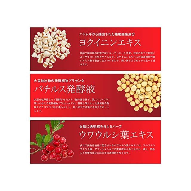 商品特長:角質ケア、美容液、肌を明るくする、うるおいを与える、ハリ