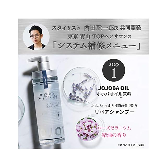 【 90%以上が美容液成分 】補修成分 の 生 ケラチンをはじめ、精油・オーガニック オイル(ホホバオイル)・ヒアルロン酸・コラーゲンなどのピュアな美容液成分で作られたミクシム ポーション