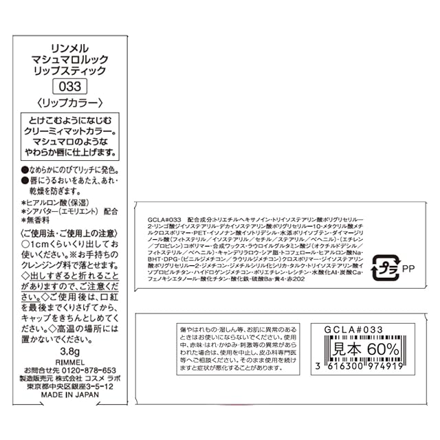 商品名:Rimmel (リンメル) マシュマロルック リップスティック 033 ソフトコーラル 口紅 033 3.8グラム (x 1)