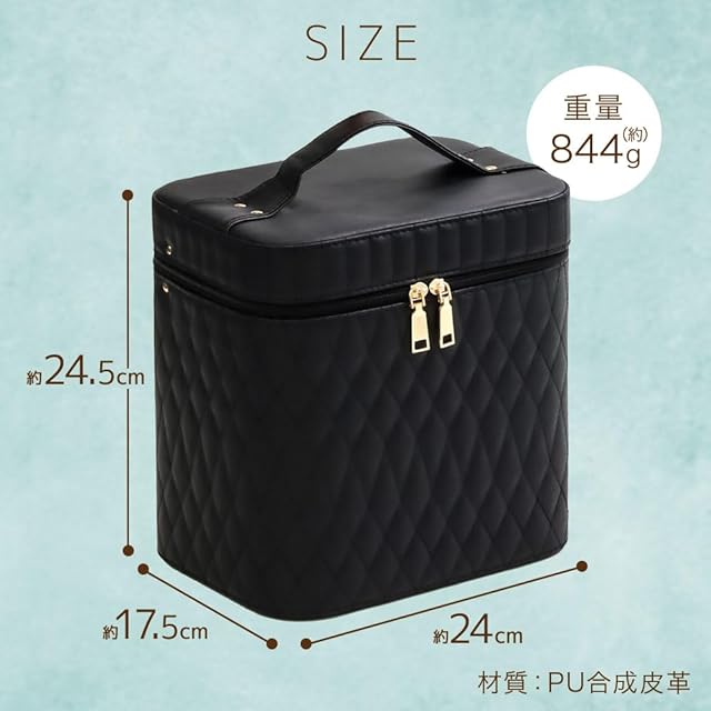 サイズ(約)24×17.5×24.5cm、重量(約)844g、材質:PUレザー合皮、※画像の化粧品は付属しません。