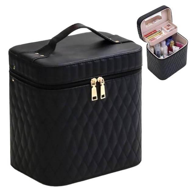 SUGGEST メイクボックス 鏡付き 大容量 選べるカラー 24×17.5×24.5cm 化粧品収納ボックス コスメ収納 コスメ アクセサリー 小物 コスメ収納ボックス (ブラック) | LIS MART