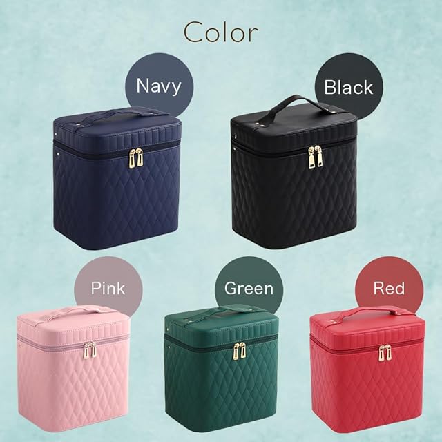 SUGGEST メイクボックス 鏡付き 大容量 選べるカラー 24×17.5×24.5cm 化粧品収納ボックス コスメ収納 コスメ アクセサリー 小物 コスメ収納ボックス (ネイビー) | LIS MART