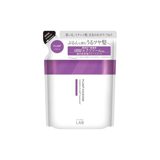 スキンケアで培われたアンレーベルの超高圧※浸透テクノロジーで猫っ毛、ペタンコ髪、毛先の広がり・うねりに集中アプローチ。ぷるんと弾むうるツヤ髪へ。超高圧※浸透型ヒト脂肪由来間葉系細胞エクソソーム*配合。集中美容液ヘアトリートメント。エレガントで心地よいムーンリットラベンダーの香り。※超高圧加工処理装置を用いた原料。*超高圧処理したヒト脂肪由来間葉系細胞エクソソーム(保湿・補修成分)