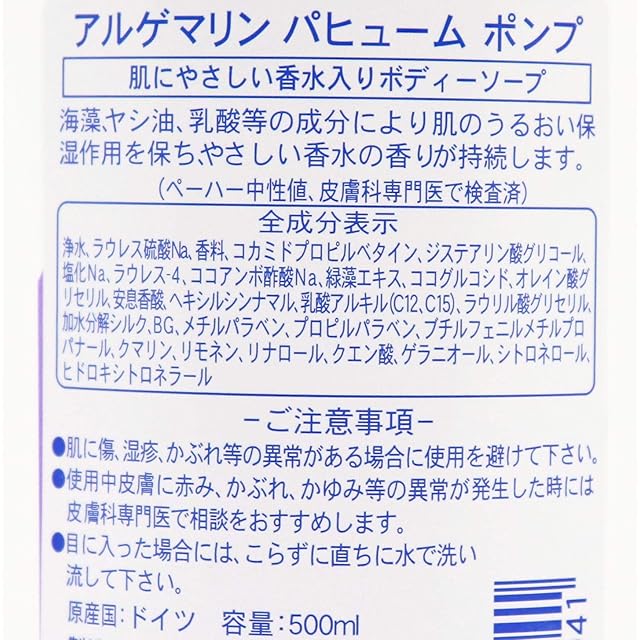 商品名:アルゲマリン パフュームシャワージェル パワーポンプ式 500ML×3本 優しい香水の香り