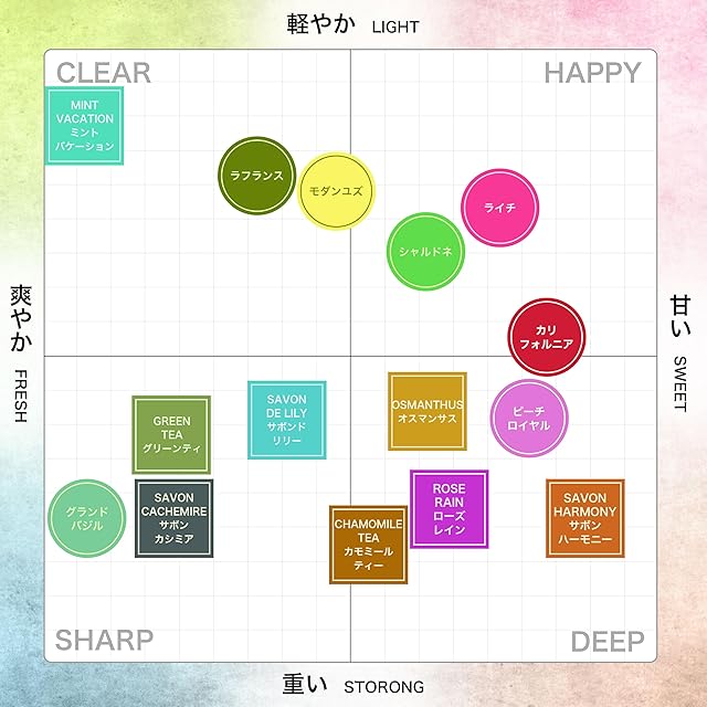 【清潔感漂う甘さがあるサボンフルーティ】温かみのある甘みを主体としたサボンフローラルノート。花々のフローラル感とオレンジなどのフルーティが奏でるシンフォニーは、甘美な美しさと可憐さを持ち、愛嬌のある可愛らしい印象をもたらします。繊細に調和されたフェミニンなサボン調は、華やかさと温かさを与え、清楚で愛らしい女性の魅力を演出します。