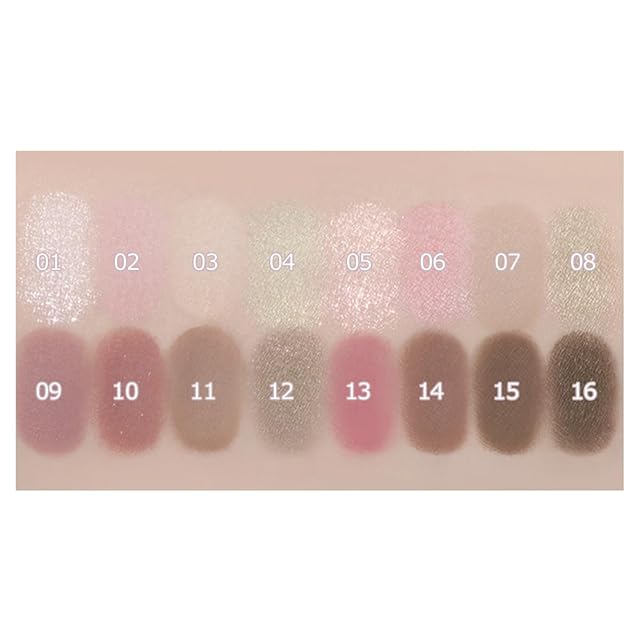 【捨て色なし!16色で完成する目元メイク】ベース・ポイント・締め色すべて揃っているため、1つのパレットでグラデも涙袋も自由自在なアイメイクが叶います。