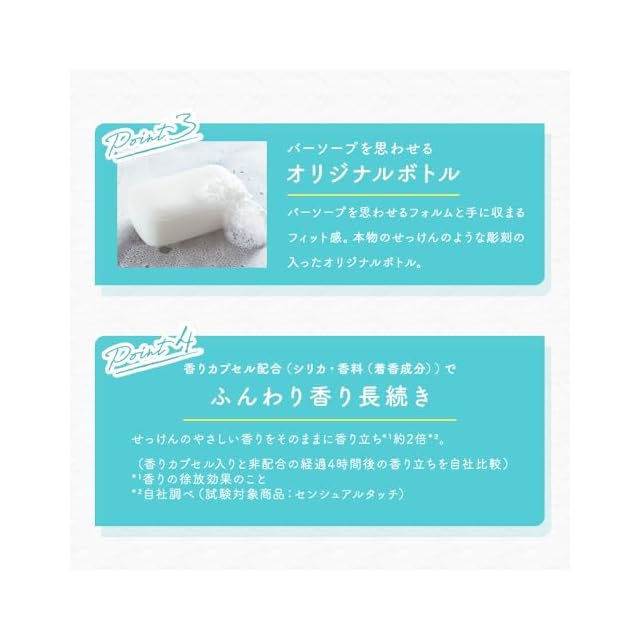 バーソープを思わせるオリジナルボトル バーソープを思わせるフォルムと手に収まるフィット感があります。