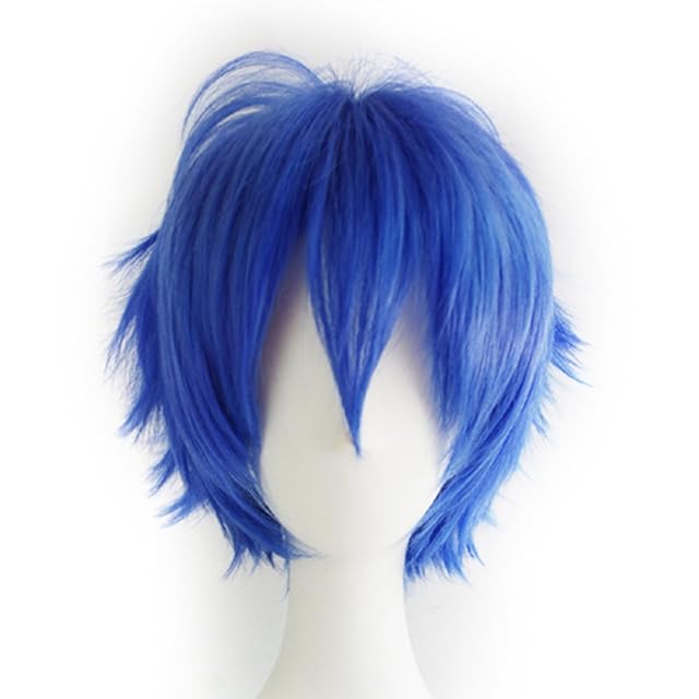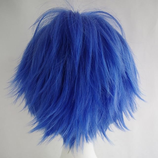 商品名:Cosplay 30cm メンズ ウィッグ 短い髪 20 色 ハンサム 男性 ふわふわ 毛 かつら コスプレ ウィッグ ダークブラウン (ブルー)
