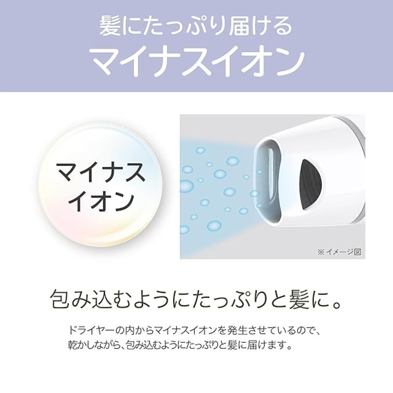 髪にたっぷり届けるマイナスイオン