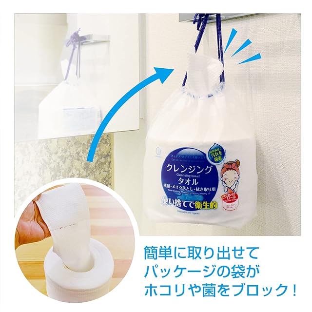 【使用方法】①ミシン目で切り取ります。②適度に水で湿らせ、やわらかくします。③顔の化粧をやさしくなでるようにして拭き取ってください。④拭き取った後のクレンジングタオルは捨てます。顔を水かぬるま湯ですすぎ、化粧水・クリームなどでお肌を整えてください。
